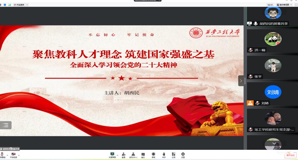 党委书记胡西民作《聚焦教科人才理念,筑建国家强盛之基——全面深入学习领会党的二十大精神》的报告。胡西民首先回顾了大会的基本情况和大会报告的主要内容,从深刻把握党的二十大的重要意义,深刻把握“三个全面”,深刻把握“五个重大原则”,深刻把握“五个牢记”等方面对二十大报告进行了全面深入的解读,并对二十大报告中关于教育、科技、人才工作的战略部署进行了系统阐释。他表示学校是培养人才的地方,是科学创新的基地,全院师生应时刻牢记教育、科技、人才是国家发展的战略之基。我们当下的责任担当一方面是防疫抗疫,而更主要的是学习科学文化知识,提高科技创新能力。我们要珍惜宝贵的时间,争取在校期间多读一篇科研论文,多做一次创新实验,上好每一节课,做好每一次作业。他号召全体党员把学习贯彻落实党的二十大精神作为当前和今后一个时期首要政治任务,并把学习成效转化为推动国产无码