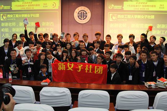 首先由新女子社团指导老师林定武对两位作家的到来表示欢迎,对在场的同学多年来对新女子社团的支持表示衷心的感谢。下来开始了访谈,主持人分别介绍了两位作家的基本情况,并提问了一些同学们关心的学习、生活、情感方面问题,两位美女作家诙谐,睿智的解答博得全场阵阵喝彩。在场的同学也纷纷提出自己的问题,两位作家耐心,认真地和同学们从不同的角度交流沟通,让同学们感受到了两位作家各自独特的思维,感情,和对事物深度的分析理解,现场气氛异常热烈。饶雪漫建议当代大学生应该多读书,读各种作家的书。本次访谈的最大亮点就是开通了微博互动,同学们可以将自己想说的话通过微博发表在大屏幕上。最后开始了大家渴望的签名,同学们拿着饶雪漫和西岭雪的作品井然有序的排队等候签名。