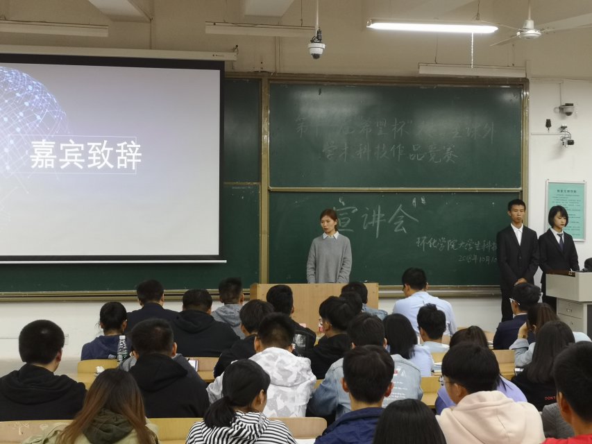刘婧在致辞中结合自身参与“希望杯”的经历和收获,希望同学们能够积极组队参加,为自身积累经验,进一步提升创新意识和创新能力。随后吴章镇对“希望杯”的基本概况、宣讲会的主要内容和目的向大家做了介绍,并着重指出参加“希望杯”的意义;罗元分享了部分优秀案例并给大家讲述了“希望杯”的路演方式和技巧;陈磊将他的创业经历、比赛经验通过风趣幽默的方式与大家分享;童永宏就如何选题、如何立项和答辩应对技巧三方面为大家做了详细讲解。