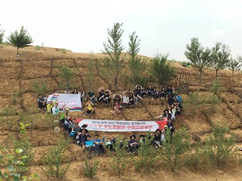 、韩国首尔大学、中国人民大学、陕西知一空调有限公司团队参与,为期七天,在库布齐沙漠龙头拐项目地铺设200余平米的沙障,采用应用适应技术改善沙漠基地设施,开展了中韩学子与达拉特旗中学交流活动和中韩学子文化交流活动。