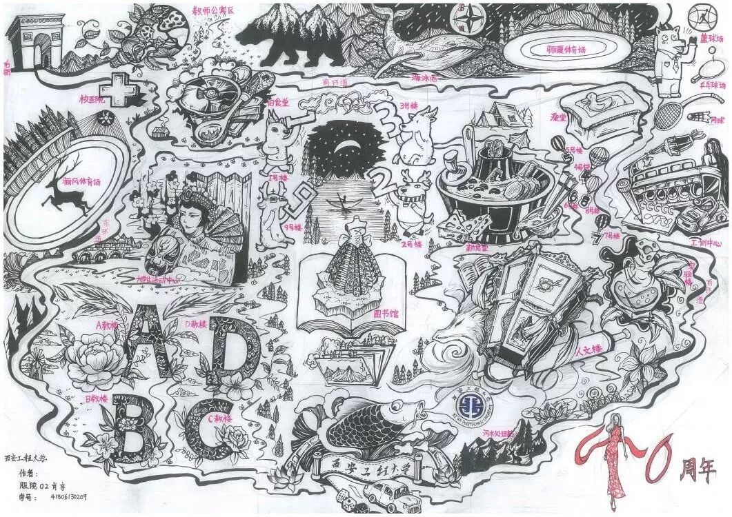 通过前期线上线下宣传,同学们积极报名参与,在独立建校四十周年校庆之际,用自己的画笔和创造力,将学校的轮廓用手绘的方式勾勒出来,展示独特的校园文化,表达对母校深沉的爱意,展现出同学们丰富的想象力和高超的作画能力。通过评委老师精心评选,于10月29日在临潼校区中心广场将优秀作品进行展览,参观的同学们络绎不绝,并对展示的作品赞不绝口。