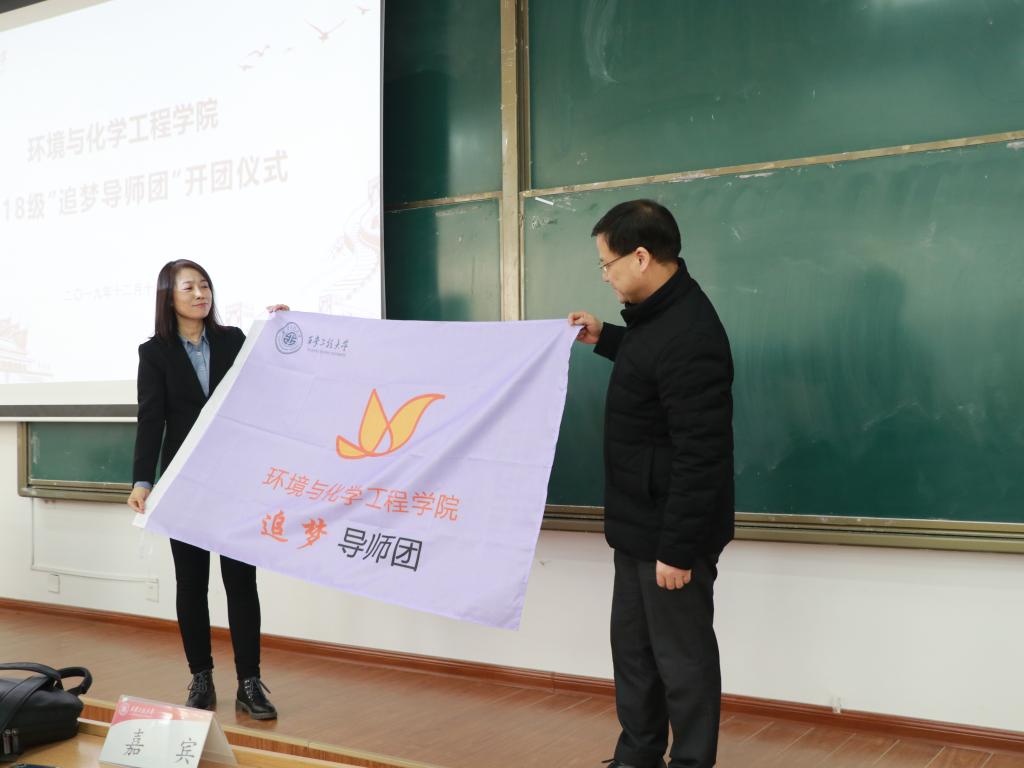 良好的教风学风,助力学生成长成才。随后,张洛红为导师团授团旗。