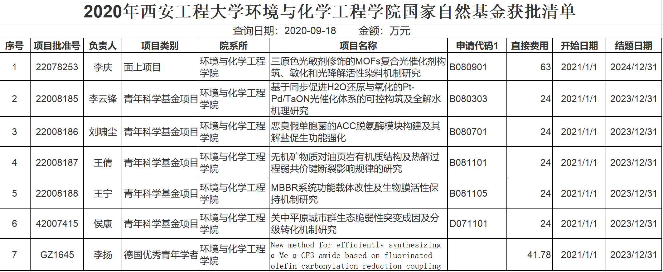 近日,国家自然科学基金委公布了2020年国家自然科学基金立项名单,国产无码 共有7项研究项目立项,研究经费共计224.78万元,实现了历史突破。
