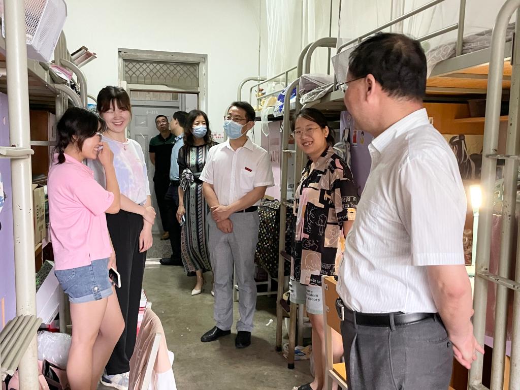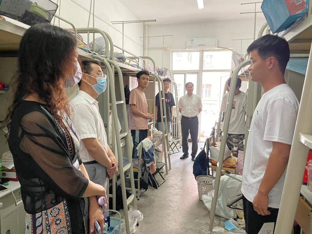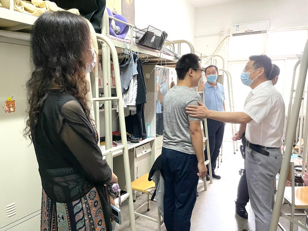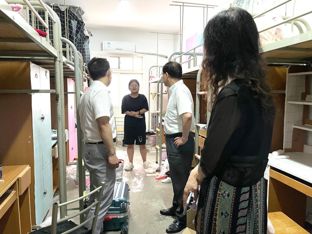 班子成员、部分教师党员以及全体辅导员一同到毕业生宿舍走访看望整好行囊,即将离别母校的学子们。