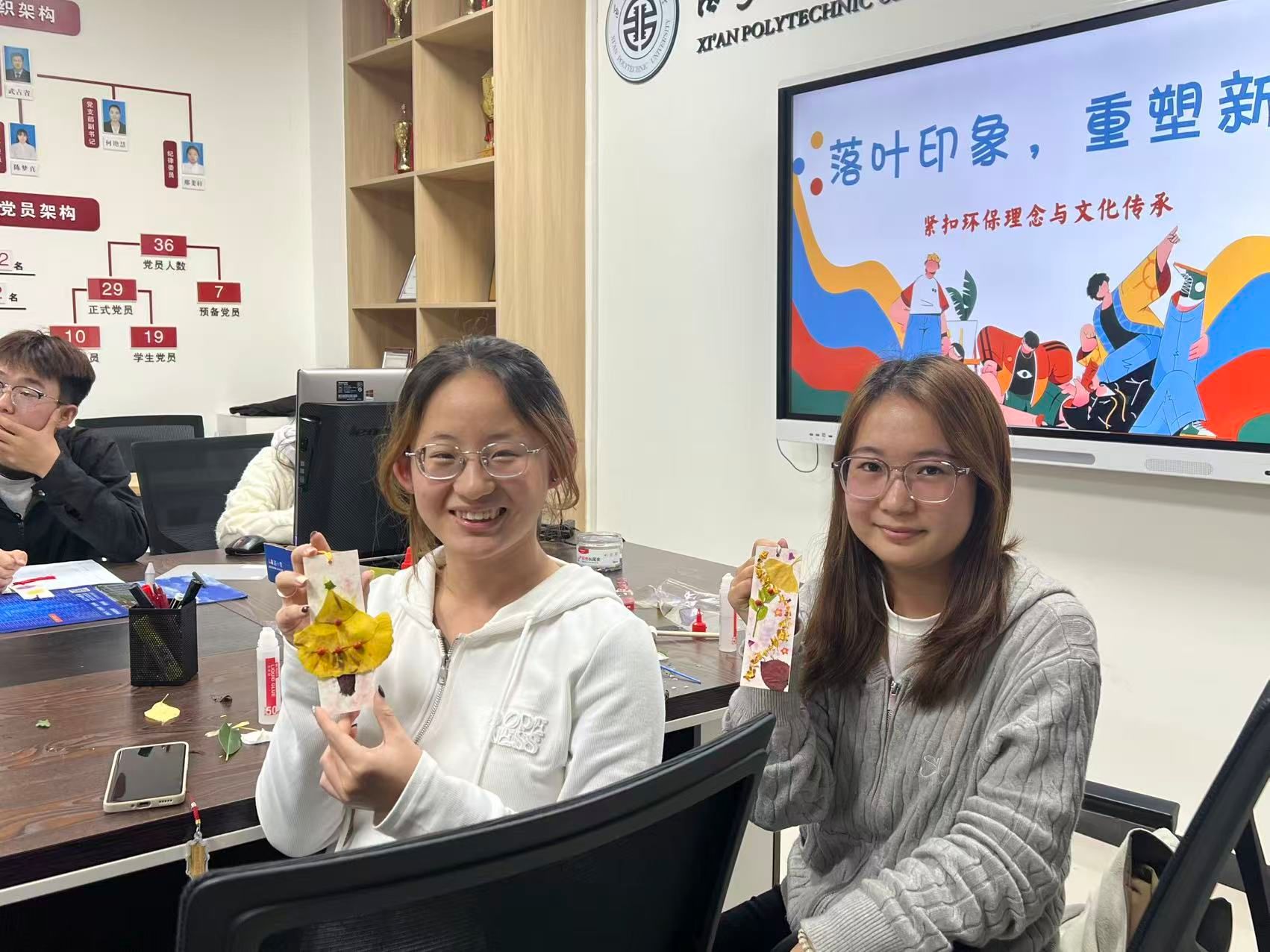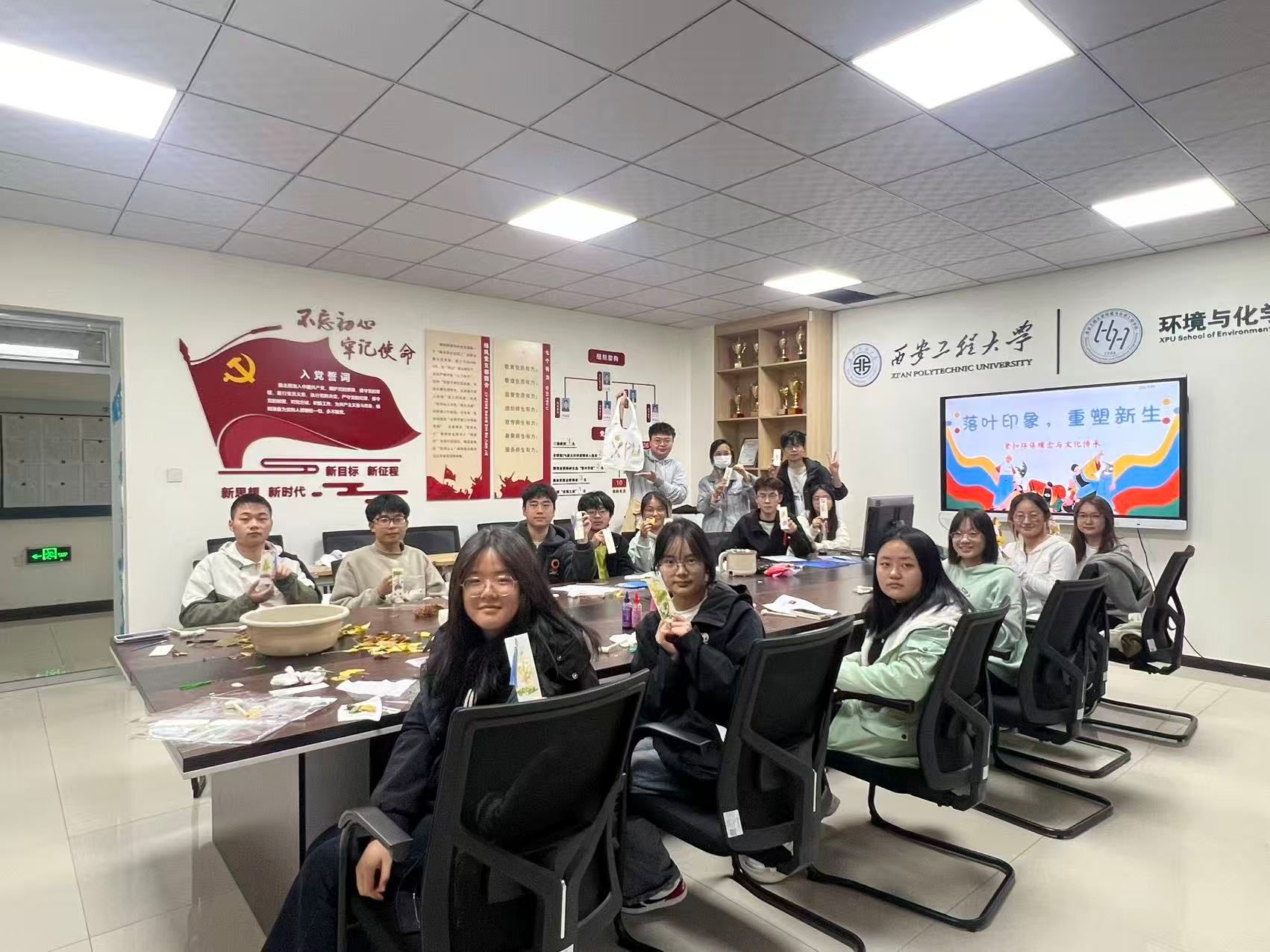 活动现场,同学们热情高涨。在小导师介绍完拓印步骤后,同学们纷纷挑选心仪的落叶,展开创意构思。有的将树叶巧妙叠放,拓出层林尽染的秋日画卷;有的巧妙融合黏土与颜料,将金秋韵味定格于方寸之间;更有同学别出心裁,以落叶拼出“XPU”字样,将对母校的深情凝聚在这独特的自然印记中。