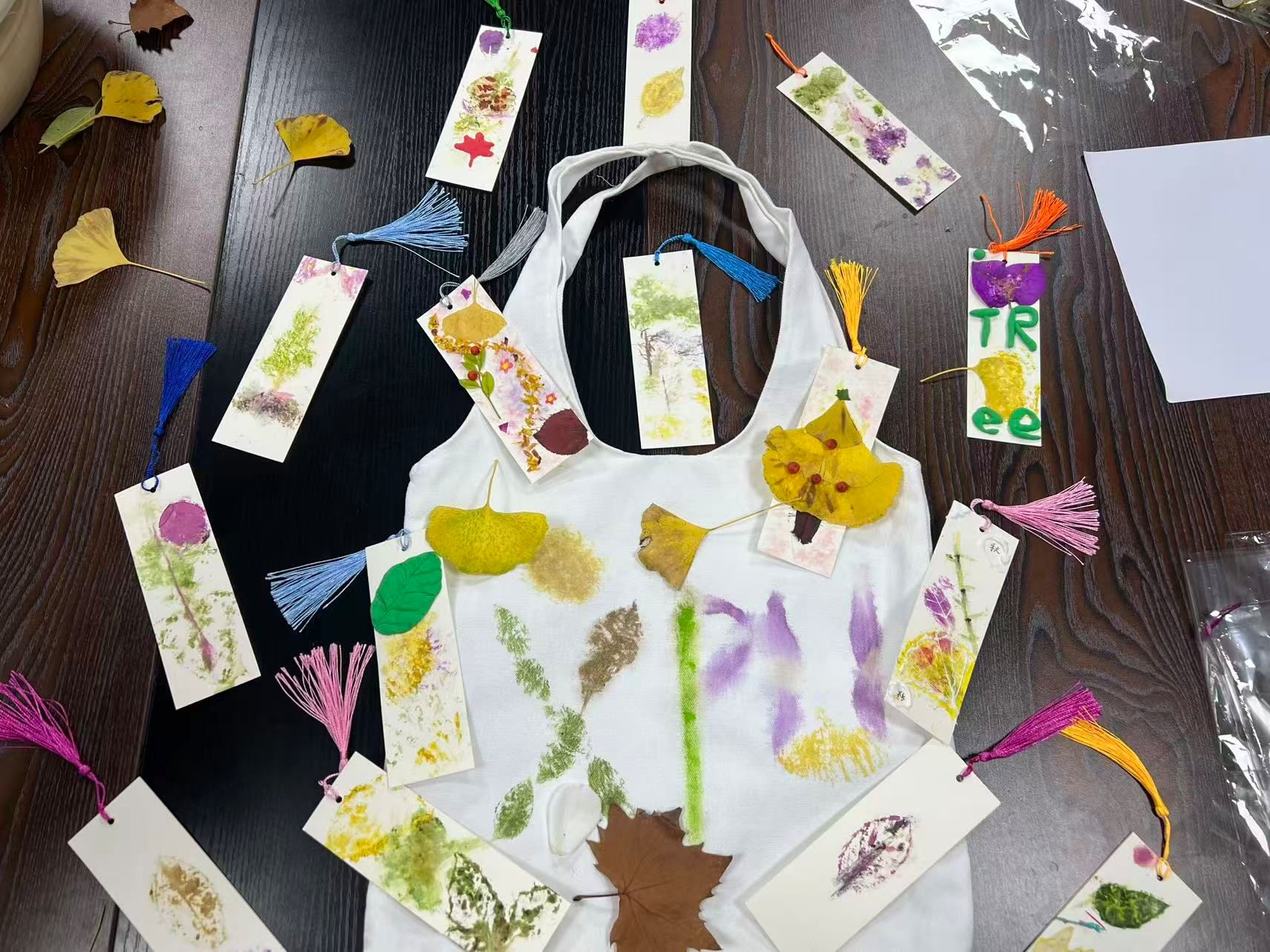 活动前期,手工小导师毛姗妮同学精心筹备,提前收集校园内形态各异的银杏叶、梧桐叶等落叶及花瓣,并准备了书签、拓印工具、颜料等材料,为同学们营造了沉浸式的手工创作环境。