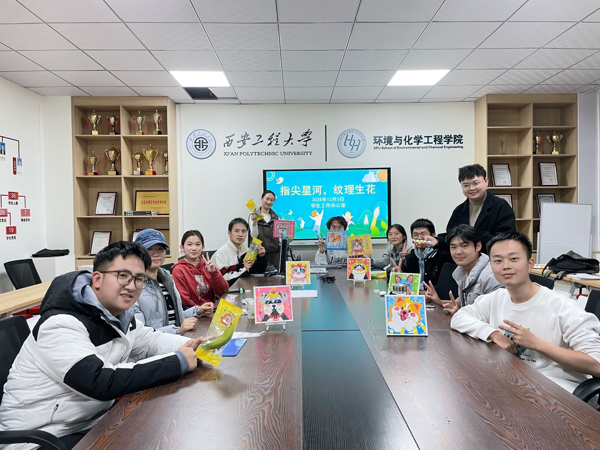 团委副书记张易泽、2025级辅导员吕国正共同参与,与来自各年级的学生代表一起,在色彩、纹理与创意中开启了一段专注当下、疗愈心灵的减压之旅。