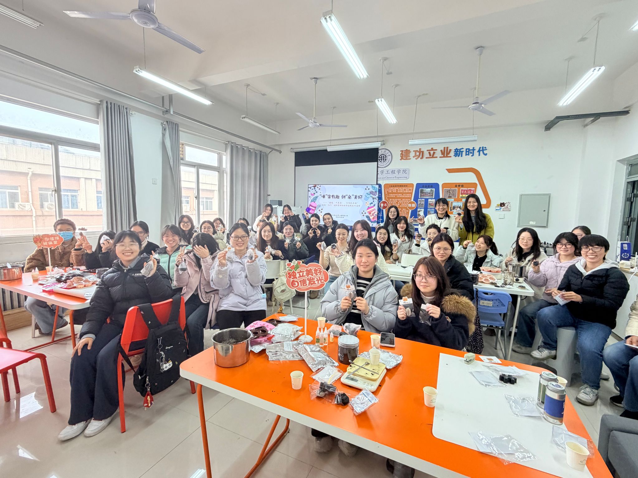 40余名女教工与受助女学生齐聚一堂,用废弃咖啡渣亲手制作环保香皂,在创意实践中感受绿色生活的魅力。